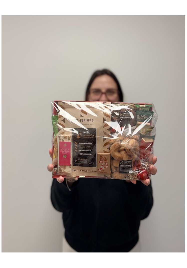 Nos coffrets gourmands sont élaborés avec soin dans notre atelier à Munster. Quel que soit le format choisi (S, M, L ou XL), chaque coffret repose sur la même base gourmande comprenant :